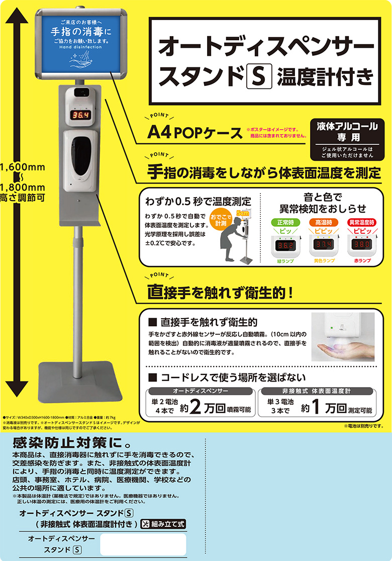 しっかり消毒!非接触!ノータッチオートディスペンサー <温度計付き>