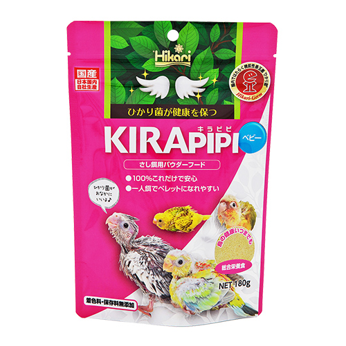 ひな鳥は本来、親鳥が多種多様な餌を食べ半分消化したものを与えられて育ちます。キラピピベビーは、本来の食性を考慮して様々な栄養素や善玉菌を配合した総合栄養食です。