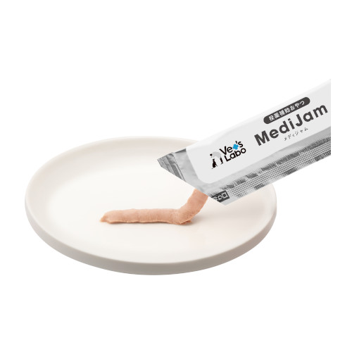 ●メディジャムは粉薬や何かに包み込んでお薬を食べることが苦手なワンちゃんのために臨床獣医師が質感と素材を追求して開発したグレインフリーの投薬補助用おやつです。