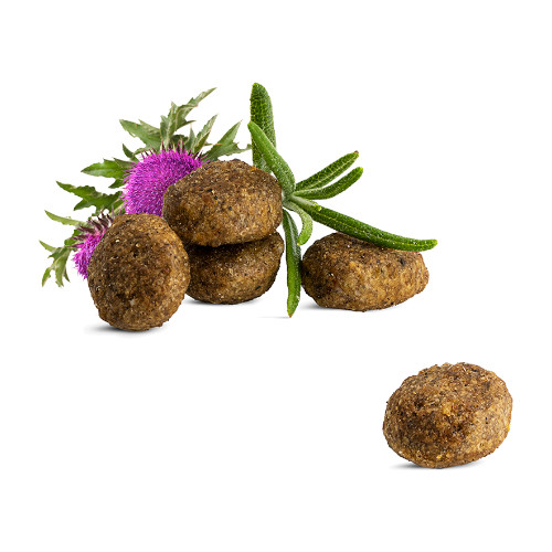 ●原材料:ポルトリープロテイン*、グリーブス(脱脂ハラミ肉)、サーモンミール(11%)、コーン粉、米、コーン、ポテト*、リグノセルロース(5.5%)、油脂類、加水分解プロテイン*、ビートファイバー*、アップルポマス*(0.8%)、塩化カリウム、サッカロマイセスセレビシエ*、塩化ナトリウム、全卵パウダー、海藻*、亜麻仁(0.16%)、ミルクシスル、アーティチョーク、タンポポ、ショウガ、カンバ葉、ネトル、カモミール、コリアンダー、ローズマリー、セージ、リコリス根、タイム、チコリパウダー(0.15%)、ユッカシジゲラ*(0.1%)、緑イ貝*、イースト抽出物*(0.02%)、ビタミン類(ビタミンA、ビタミンD3、ビタミンE、ビタミンB1、ビタミンB2、ビタミンB6、ビオチン、Dパントテン酸カルシウム、ナイアシン、ビタミンB12、ビタミンC、葉酸)、ミネラル類(鉄、銅、亜鉛、マンガン、ヨウ素酸カルシウム、亜セレン酸ナトリウム)、その他栄養素(DLメチオニン、タウリン、コリン)、天然由来トコフェロール(酸化防止剤として)(*乾燥)