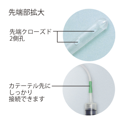 ●カテーテル先のシリンジにしっかりと接続する為、膀洗時の濡れによるカテーテル抜けがありません。