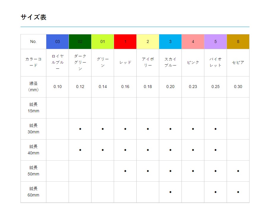 取扱の無い線径・鍼長のご希望がございましたらお気軽にお問合せください。