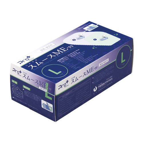 ●「より衛生的な製品」を心掛けて、パッケージにもこだわりの機能を追加しました。取出口の大きさを選べることができ、手袋の向きを揃えることによって、指先部分に触れることなく取り出すことができます。