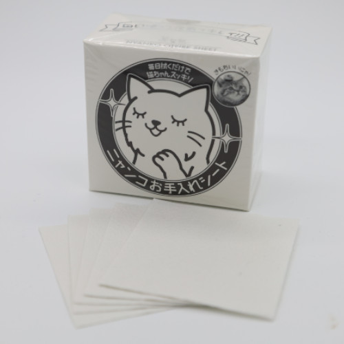 『ニャンコお手入れシート』を1枚ずつ取り出して水に濡らし、軽くしぼって愛猫の身体を拭いてください。