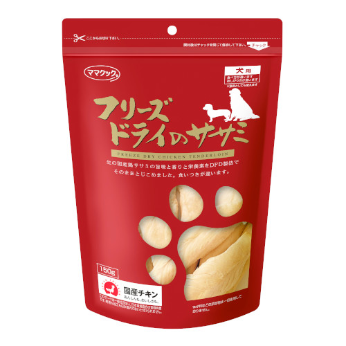 ●鶏ササミは鶏肉の中で最も高タンパクで低脂質です。減量中のわんちゃんにもおすすめです。素材のままの味、香り、栄養を損なわないのは弊社独自のフリーズドライの特徴です。原材料調達から加工・包装まで、全て国内で行っておりますので安心してご利用ください。