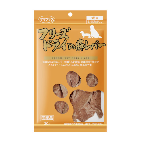 ●新鮮な国産豚レバーをDFD製法で仕上げました。そのままおやつとして、トッピングとしてもご使用いただけます。豚レバーは高タンパクで鉄分、ビタミンA・B1・B2・Cを豊富に含みます。素材のままの味、香り、栄養を損なわないのは弊社独自のフリーズドライの特徴です。原材料調達から加工・包装まで、全て国内で行っておりますので安心してご利用ください。