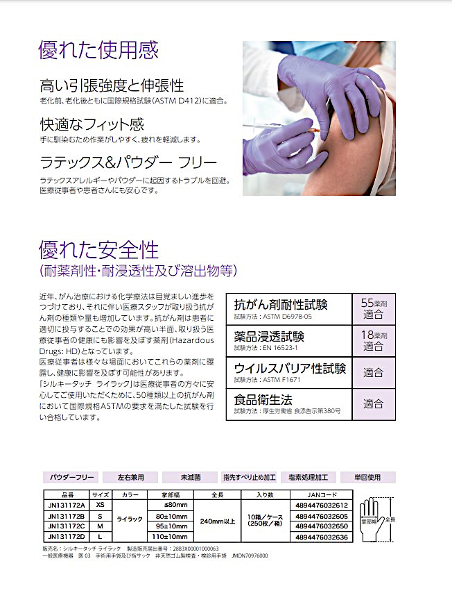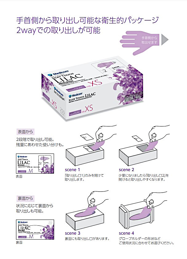 ●アレルギーの原因となるラテックスプロテインおよびパウダー不使用で、天然ゴム特有のゴム臭もありません。