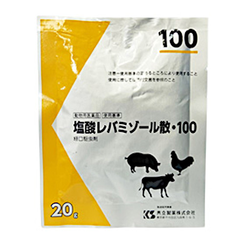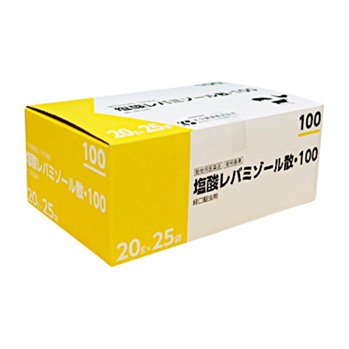 ●1日量として体重1kg当たりレバミゾール塩酸塩として下記の量を、飲水に溶解、飼料に添加又は練り餌状にして経口投与する。再感染が認められた場合は同様の用法及び用量で投与する。