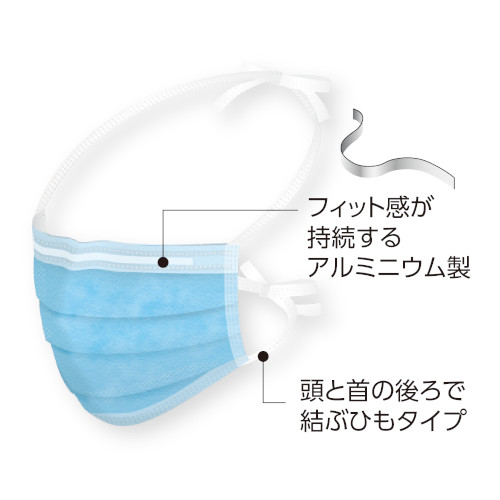 ●ひもを使用し頭と首の後ろで結ぶタイプです(耳ひもはゴムではありません)。