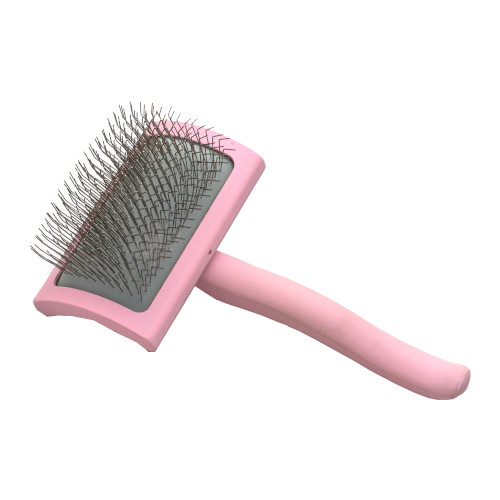 スパーロングなピン先で大型犬・長毛犬種に最適。人口工学に基づいた持ち手で握りやすく使いやすいスリッカーブラシ。