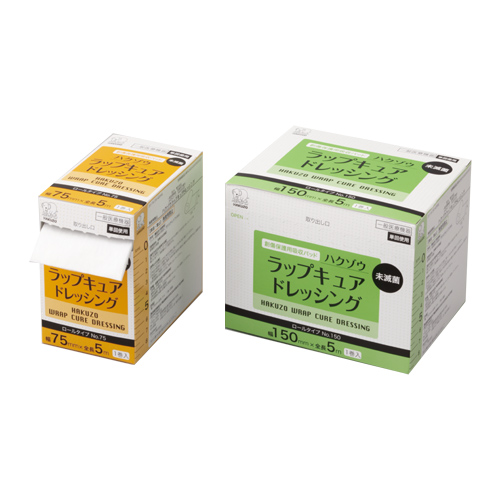 固着しにくいフィルムで吸収性コットンシートサンドし、ロール状にした創傷保護用吸収パッドです。