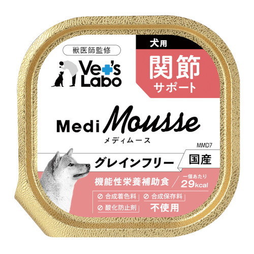 肉類 ( 鶏ササミ、カンガルー)、トマト、じゃがいも、馬鈴しょでん粉、サイリウムハスク、ガラクトオリゴ糖、魚軟骨抽出物(コンドロイチン)、プロテオグリカン含有サケ鼻軟骨抽出物 ( デキストリン、サケ鼻軟骨抽出物 )、増粘多糖類、ミネラル類 ( カリウム )、グルコサミン、L- カルニチン