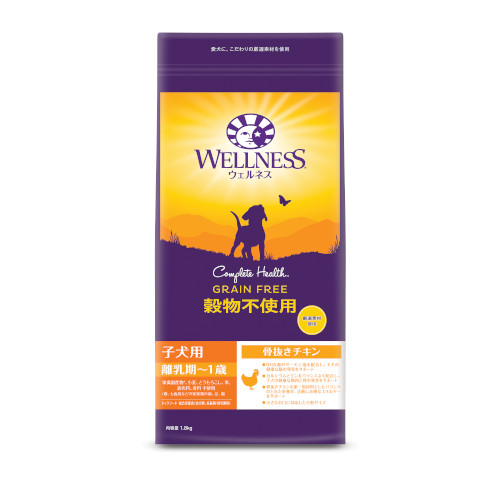 ウェルネス穀物不使用子犬用骨抜きチキンは、厳選自然素材を使用した穀物不使用のドッグフードです。