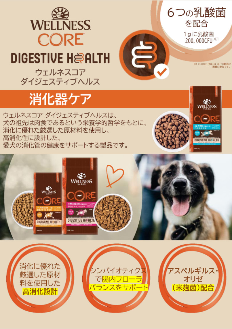 ●消化に優れた厳選した原材料を使用し、高消化性に設計された消化管の健康に配慮した製品