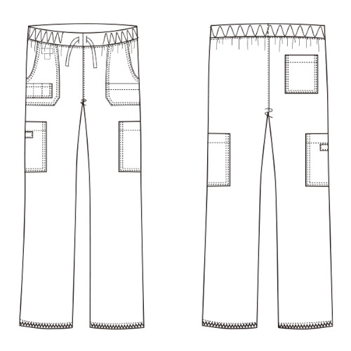 両脇ポケット(小ポケット付)/後ろ右パッチポケット/ひざ上左右ポケット/ウエストひも入り