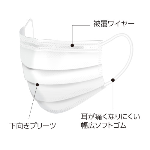 ●ノーズピースは被覆ワイヤーで、マスクの形状をキープし顔へのフィット感が持続します。
