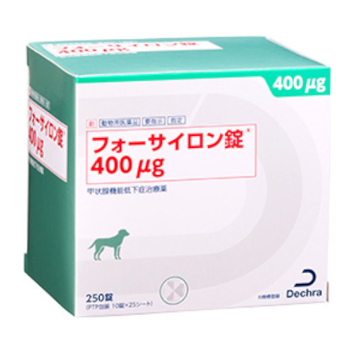 用量設定:投与開始量として犬の体重1kg当たり、レボチロキシンナトリウムとして10μgを1日2回投与する。ただし、体重が2.5〜5.0kg未満の犬については、1頭当たり50μgを1日1回投与する。投与開始後2〜4週目にモニタリング(臨床観察、甲状腺ホルモン測定及び血液・血液化学検査)を行い、1日1頭当たりの総量として調整前の投与量から50〜200μgの範囲で増減した量を投与する。