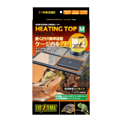 ケージの上に置くだけの簡単設置で、省スペースな爬虫類用ヒーター。ケージ内を優しく保温します。
