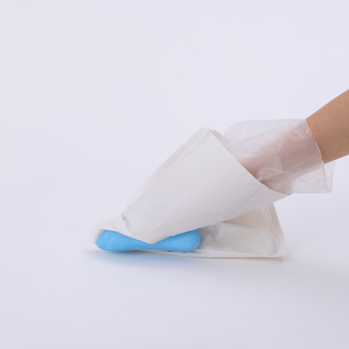 ●ポリ袋に手を入れてつかむので手が汚れず衛生的です。