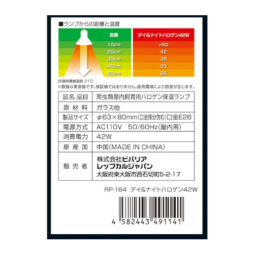 デイ&ナイトハロゲン42W:一般的な保温ランプ75W相当