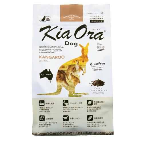 【原材料】カンガルー生肉、ドライフィッシュ、えんどう豆、タピオカスターチ、全粒亜麻仁、鶏脂、天然フレーバー、ビネガー、ミネラル類(塩化ナトリウム、炭酸カルシウム、硫酸亜鉛、硫酸鉄、硫酸銅、硫酸マンガン、亜セレン酸ナトリウム、硫酸コバルト、ヨウ素酸カルシウム)、酸化防止剤(クエン酸、天然ミックストコフェロール、ローズマリー抽出物、グリーンティ抽出物、スペアミント抽出物)、ビタミン類(塩化コリン、ビタミンEサプリメント、ナイアシン(ビタミンB3)、パントテン酸カルシウム(ビタミンB5)、リボフラビンサプリメント、チアミン硝酸塩(ビタミンB1)、ビタミンB12サプリメント、ビタミンAサプリメント、塩酸ピリドキシン(ビタミンB6)、葉酸(ビタミンB9)、ビタミンD3サプリメント)、タウリン