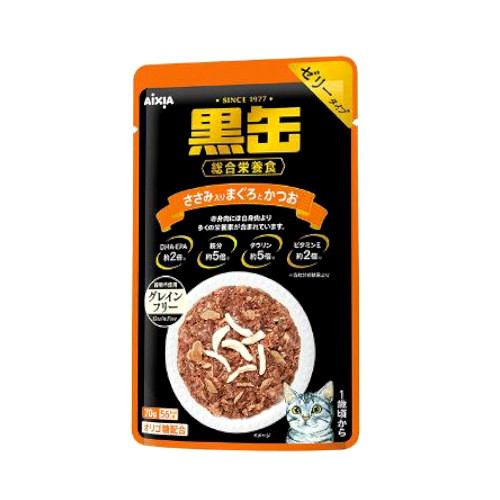 黒缶パウチ ささみ入りまぐろとかつお