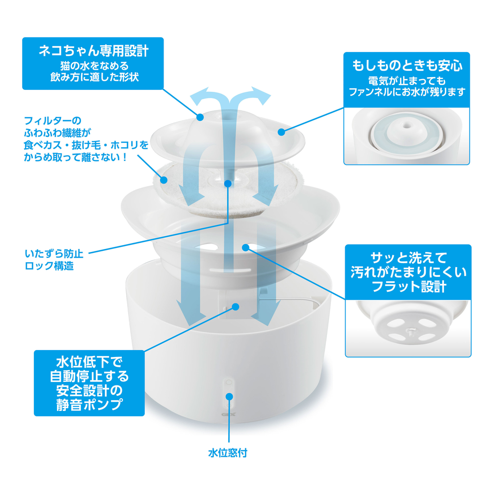 フィルターで汚れもヨダレもしっかりキャッチし、いつでもキレイなお水を。