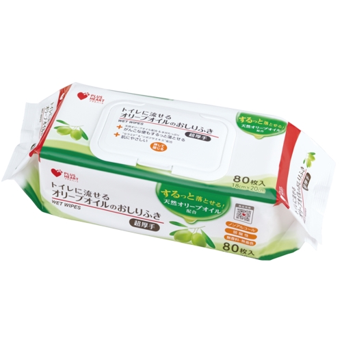 トイレに流せるオリーブオイルのおしりふき ふた付 超厚手