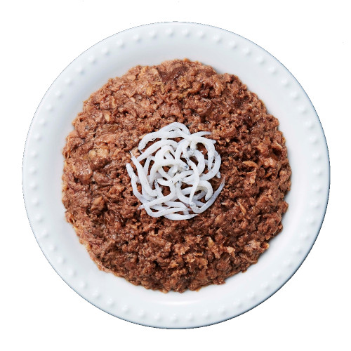 DHA、EPA、鉄分、タウリン、ビタミンEを含むかつおの赤身肉に、人気の具材をトッピングした総合栄養食。