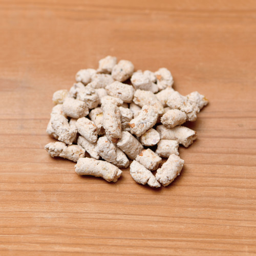 ●ふじりんご果肉にさつまいも、果肉入り無添加ブルーベリージュースを混ぜこみ焼き上げた自然派トリーツ。