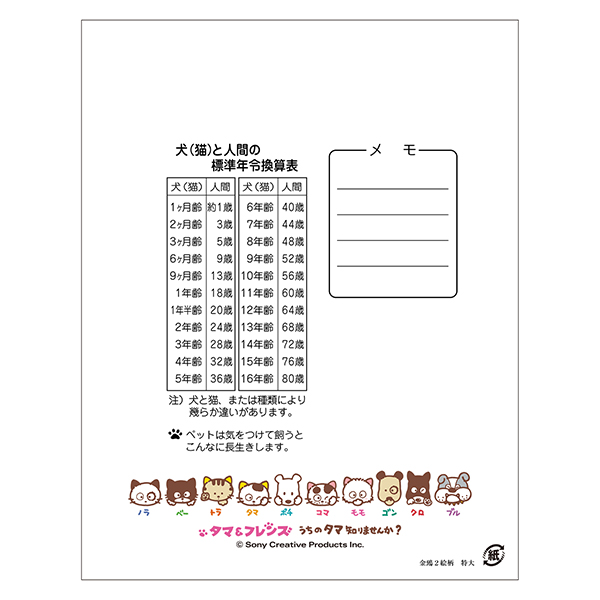 ★新規・再注文(変更あり)タマカラー動物専用薬袋 名入れタイプ