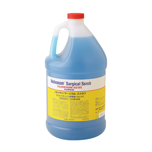 ●ノルバサンサージカルスクラブは肌荒れが少なく獣毛への着色がない、扱いやすい殺菌消毒剤です。