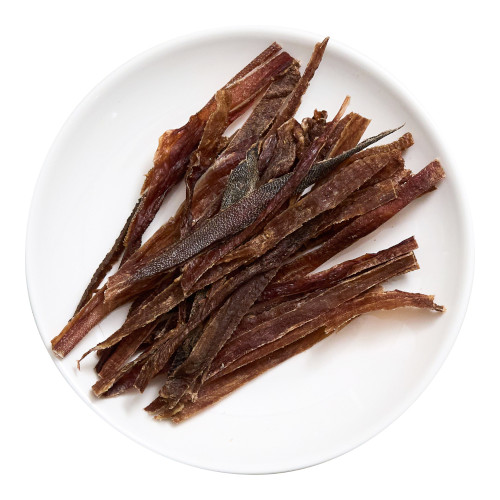牛たんの皮を乾燥させた無添加ジャーキーです。美味しい香りとパリパリ食感がやみつきです。高タンパク・低脂肪・コラーゲン豊富なのでダイエット中のわんちゃんに安心です。小型犬や歯の弱いシニア犬が食べやすいように細くスライスしました。