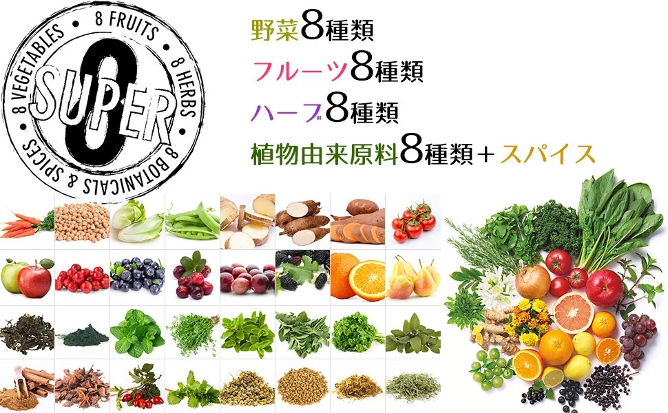 ●スーパー8 (野菜 8種類、フルーツ 8種類、ハーブ 8種類、スパイス・植物由来原料 8種類)