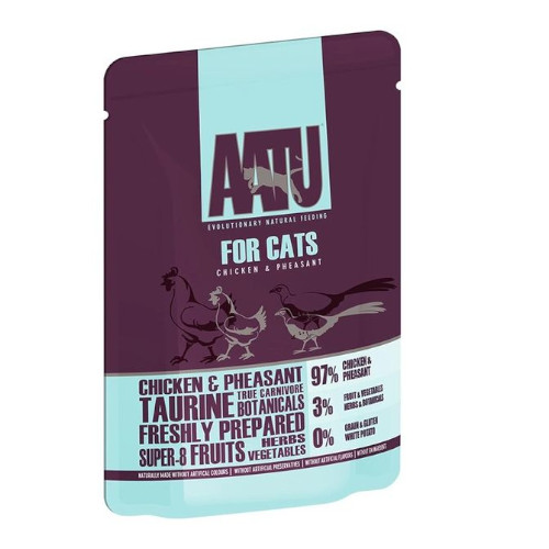 AATUシリーズは上質な肉食ダイエットを好む愛猫のために肉(魚)85%(愛猫用)と15%(愛猫用)の野菜、フルーツ、ハーブ、植物由来原料をふんだんに使用した100%ナチュラルなグレインフリー(穀物不使用)キャットフードです。