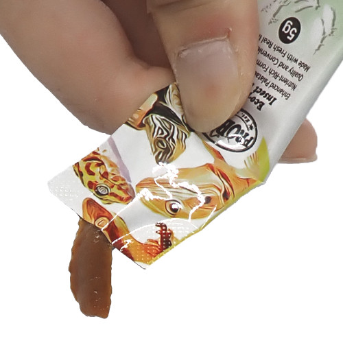 ●一口で食べる量をしぼり出して、爬虫類の目の前で動かして与え、食べなくなるまで続けてください。