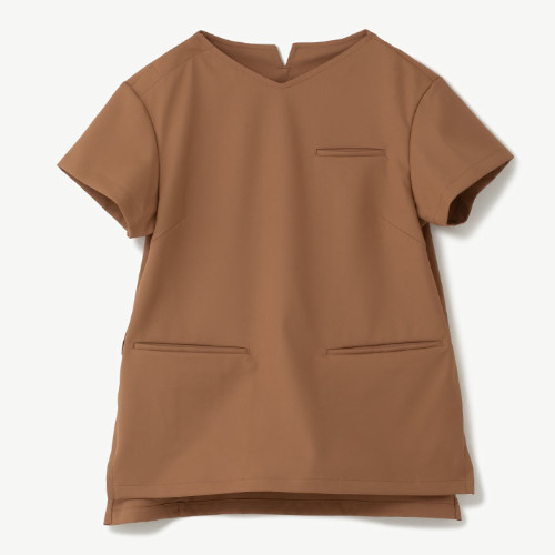 ●バックスタイルの切り替え線と首付け根のスリットが大人かわいく、ファッショナブルな印象のプルオーバータイプのスクラブ。