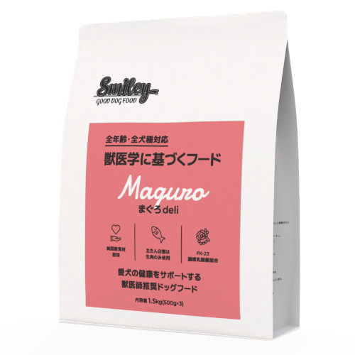 豊富なDHA&EPA、良質なたん白質、低脂肪、ビタミンB6など多くの栄養素を持つまぐろ生魚使用で愛犬の健康と若々しさを維持