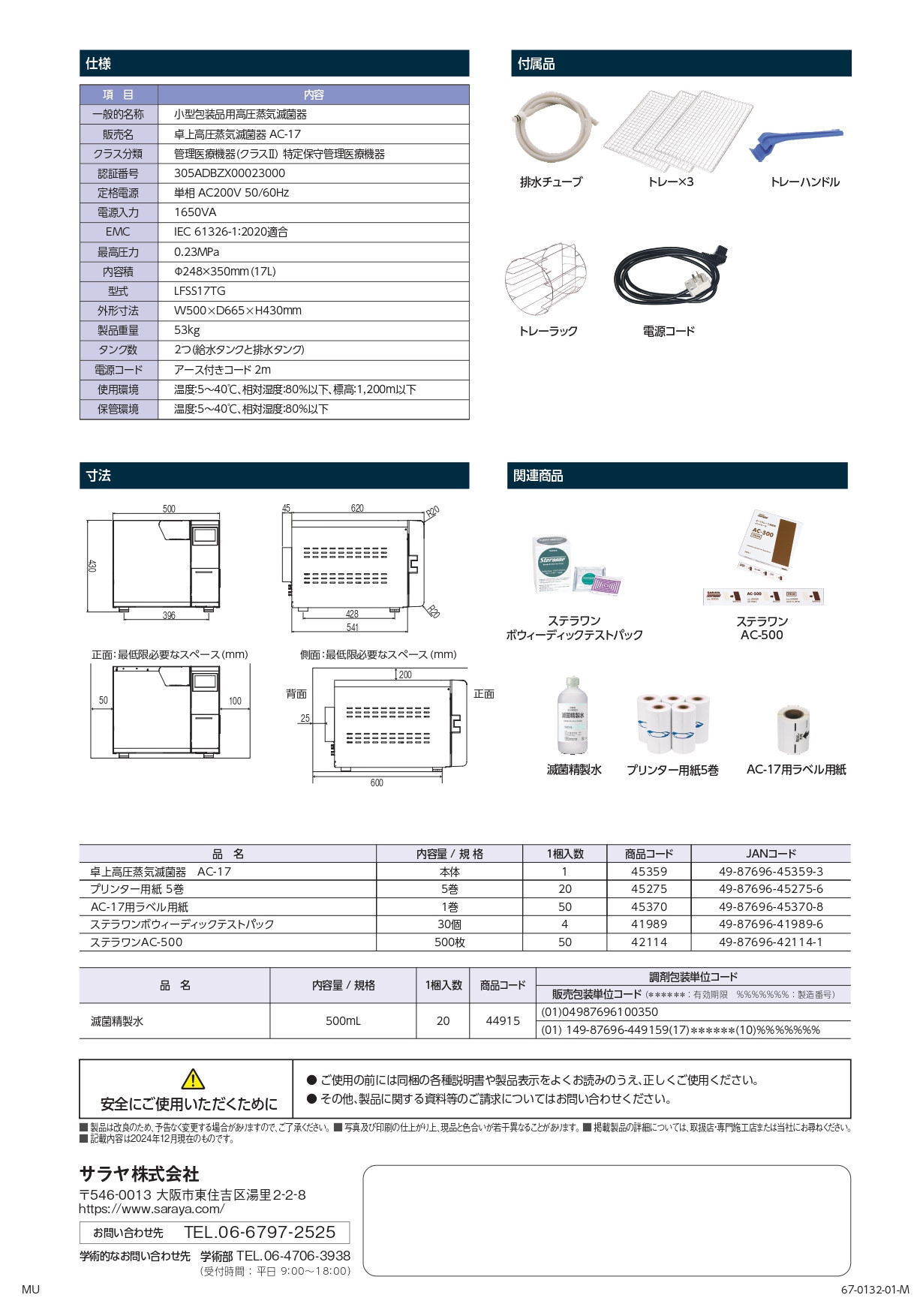 トレー、トレーラックが付属しています。確実な滅菌の質を保証するインジケータも取り揃えています(別売り)。