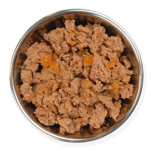 チキン85%(鶏肉60%、チキンスープ25%)、サツマイモ、ニンジン、ズッキーニ、エンドウ、サーモンオイル、ひまわり油、ルーサン、海藻、パセリ、セロリ、チコリ根、イラクサ、ウコン、アニシード、ミネラル類