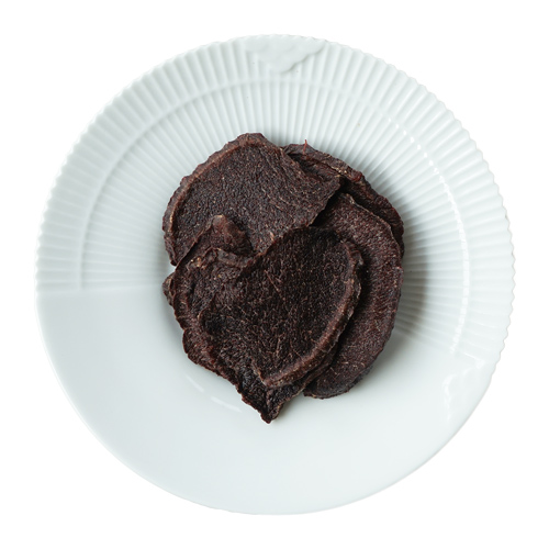 ●エゾ鹿スライスジャーキーに比べて少ししっとりとした食感、筋がほとんどない為、サクサクとして手で簡単に割る事ができます。