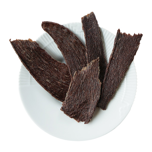 ●筋や脂を丁寧に取り除き、独自の乾燥方法でサクサクとした食感に仕上げています。