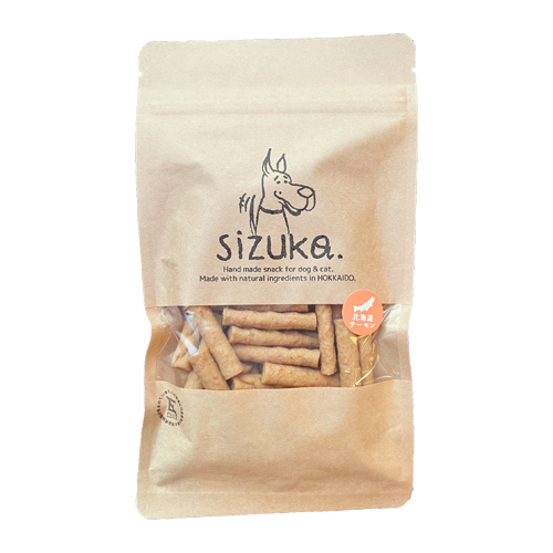 アスタキサンチンが豊富な北海道産の鮭を使用したスティックジャーキーです。手で簡単に折ることができますので、しつけのご褒美にも最適です。