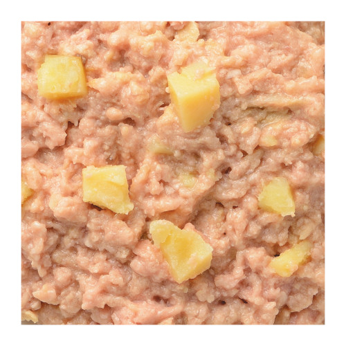 ●鶏肉と鶏ささみに食物繊維を含むさつまいもを皮付きのまま加え、食べやすいミンチ状に仕上げました。