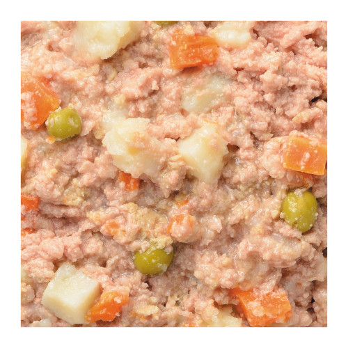 ●【原材料】鶏肉、鶏胸肉、野菜類(じゃがいも、人参、グリンピース)、EPA・DHA含有精製魚油、増粘多糖類、ミネラル類、ビタミン類