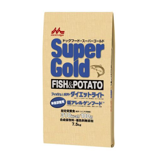 アレルゲンになりにくいといわれる魚とポテトを使用。食物アレルギーに配慮した体重調整用のフードです。