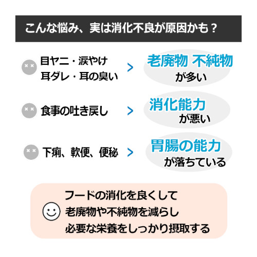 ドッグフードの原材料のお肉や脂肪、繊維分だけでなく犬が苦手とする穀物類の消化をサポートします。