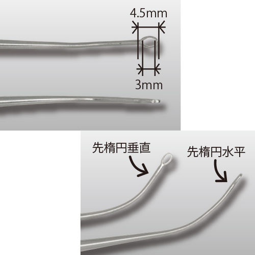 糸を通す先端のリング形状が楕円である為 挿入と引き抜きがスムーズに出来ます。