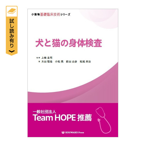 また、ペットの健康診断を推進している一般社団法人 Team HOPE が監修・執筆しており、実際に現場で使っているアイテムなども解説し、標準的な身体検査の方法を学べる1冊になっています。