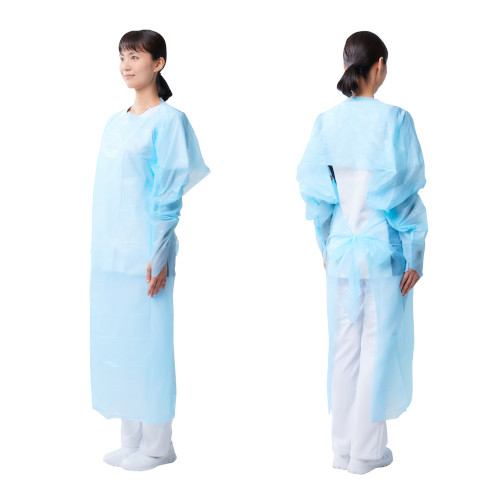 ●バリア性が高いポリエチレン製エプロンの袖ありタイプなので、血液や薬液などの飛散から着用者をしっかりと保護します。
